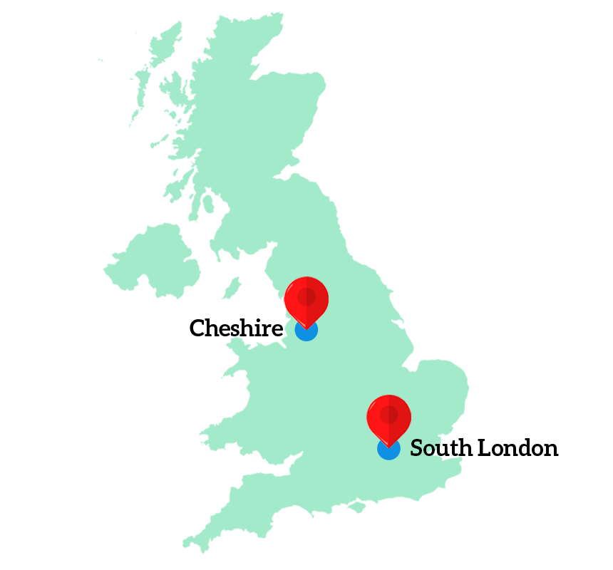 We cover most parts of South London; Colliers Wood, Wimbledon, Croydon, Thornton heath and Streatham and Cheshire